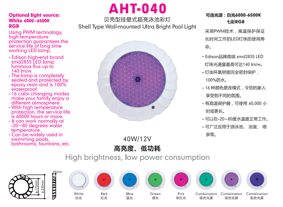 普瑞2835高亮度燈珠,光束角120度,可以在-20~38度水溫中正常工作。