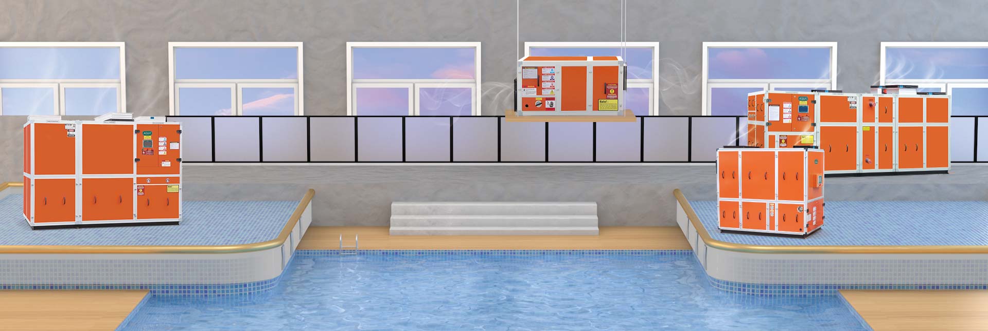 AQUA宅男在线播放宅男天堂污污视频設備旗下的除濕熱泵係列集空調、除濕和池水加熱於一體,大量回收並綜合利用能量,克服高濕、高氯環境等諸多問題,通過春夏秋冬季節運行模式的改變,達到高效率、節能環保的運行,是一種十分環保節能的宅男天堂污污视频設備產品。